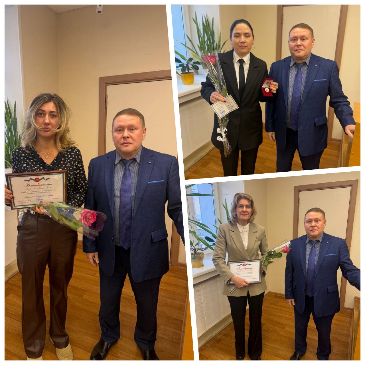 Председателем Воркутинского городского суда Республики Коми Поповым В.В. в торжественной обстановке награждены в связи с 25-летним юбилеем со дня создания мировой юстиции в Республике Коми. Нагрудным знаком «За безупречную службу Республике Коми» секретарь судебного заседания Северного судебного участка г. Воркуты Лашкуль Анастасия Васильевна. Благодарностью Главы Республики Коми за эффективное исполнение должностных обязанностей и многолетнюю добросовестную работу помощник судьи Северного судебного участка г. Воркуты Васильева Юлия Вячеславовна, секретарь судебного заседания Шахтерского судебного участка г. Воркуты Евсеенко Оксана Александровна. |